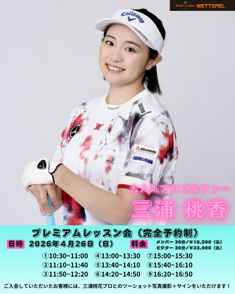 さらに、当日ご入会いただいたお客様には三浦桃香プロとのツーショット撮影+サインの特典もご用意しております🙇♂️
